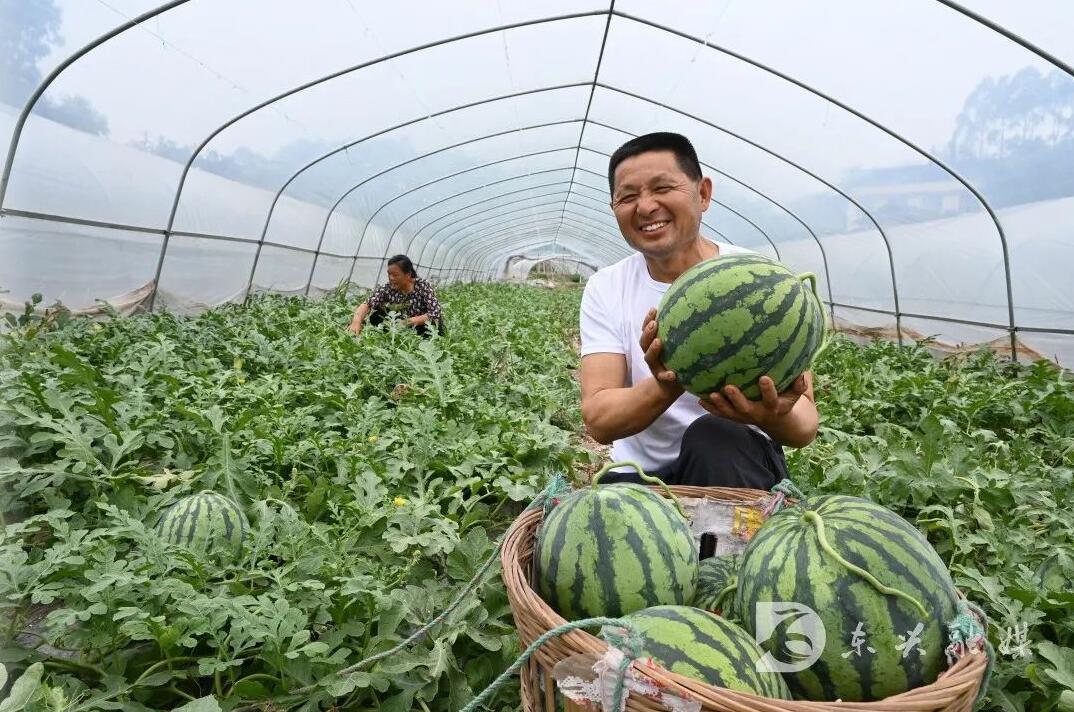 西瓜种植是东兴区的传统优势产业。为不断提升产业优势,东兴区引进了种植周期短、皮脆薄、口感好、市场前景广阔的麒麟新品种。为保证麒麟西瓜稳产丰收,改变种植方式,提高作物的抗旱能力,让麒麟西瓜的根系扎得更深、品质更高、产量更丰,给果农们带来了丰收的好“钱”景。