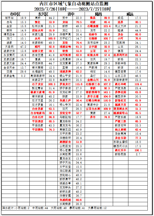 时间:2023-07-27 08:47:04 来源:内江市气象台刚刚,内江市气象台发布雨情通报,详情如下。