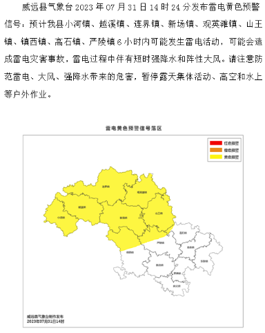 威远县气象台发布雷电黄色预警信号