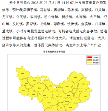 资中县气象台发布雷电黄色预警信号