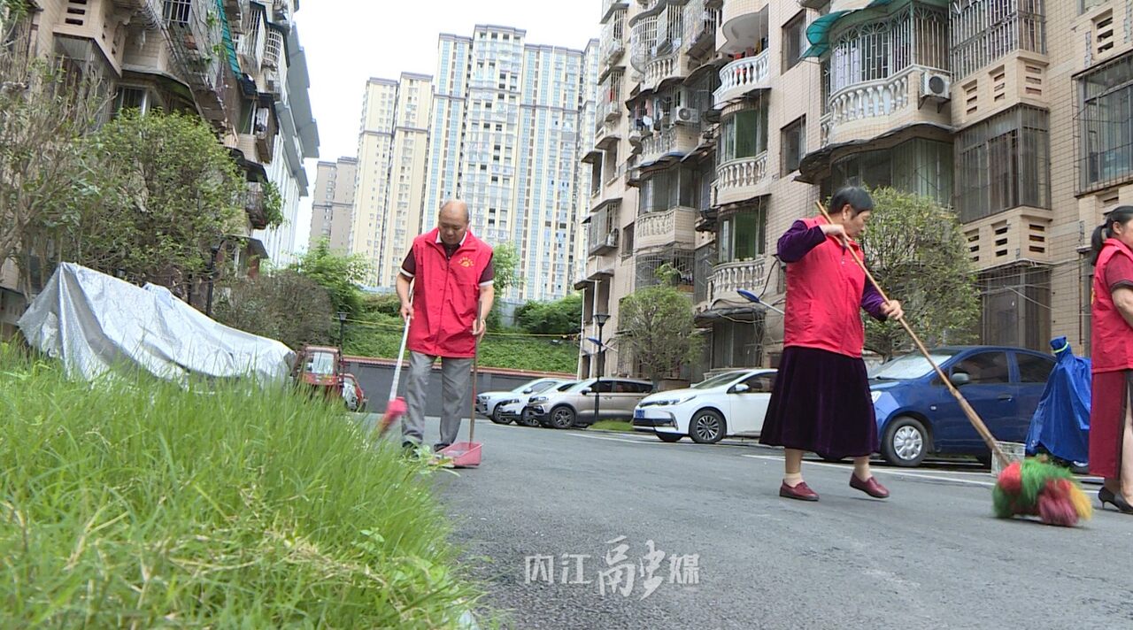 同样,在蟠龙冲龙珠名苑小区,内江高新区胜利街道新立社区的志愿者们正在对小区内的枯叶、垃圾进行清扫,并对居民们进行了创文巩卫宣传。