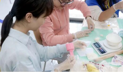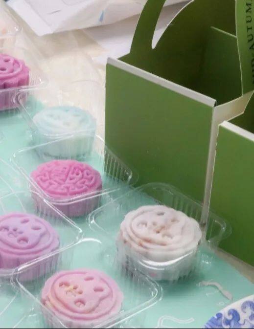 活动伊始,工作人员精心准备好了面团、馅料、手套、木饼印等材料及工具。在分发原料后,大家根据自己的喜好,包入莲蓉、豆沙等馅料,再往模具里放入包好馅料的粉皮按压花纹,最后一个个象征着团圆与美好祝愿的冰皮月饼就制作完成了。