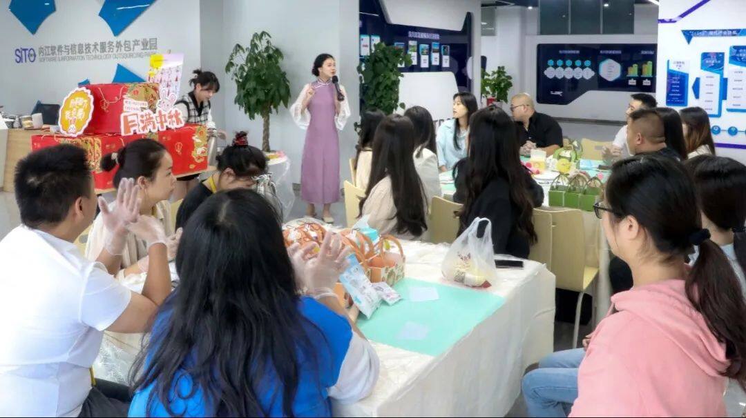 值此佳节,为宣扬传统文化体现园区风采,给予园区各企业职工以节日慰问,增强园区企业归属感体验节日气氛感受中华文化之美。9月26日下午,由内江市东兴区商务局、内江软件与信息技术服务外包产业园工会联合会、中共内江软件与信息技术服务外包产业园支部主办,内江大合创新管理服务有限公司承办,内江服务外包产业有限公司协办开展的“悦享中秋 情满园区”——中秋主题活动,在内江软件园B区一楼大厅圆满举办。活动设置了制作冰皮月饼、做花灯等环节,与园区各企业职工欢度中秋佳节。