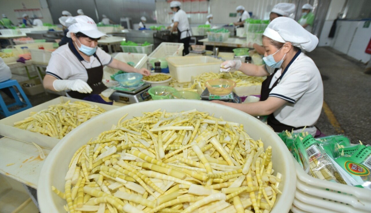 而在园区的另一边,新茂源、竹鑫兵等部分重点项目已建成投产。走进四川竹鑫兵食品有限公司,工人们正在清洗、筛选食材……一道道工序下来,麻辣竹笋、土豆片等休闲食品顺利装袋,即将运出园区。作为最先入驻内江甜味食品产业园的企业,该企业主要生产竹笋类的地方特色食品,通过引进自动化先进设备,采用“大千美食”秘制技术,专业生产竹笋、菌菇类、山野菜等系列野山珍休闲食品,年加工食品能力1万吨,年产值8000余万元,产销量在全国同行业名列前茅。