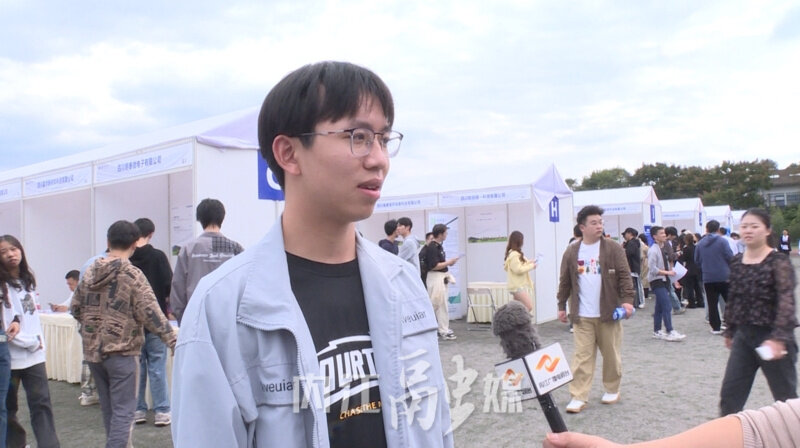 成都工业学院毕业生廖鸿波表示,他在内江的展区逛了一圈,发现金鸿曲轴公司的技能要求和自己所学的知识相匹配,于是投递了一份简历,希望能收到面试通知,获得一份工作。