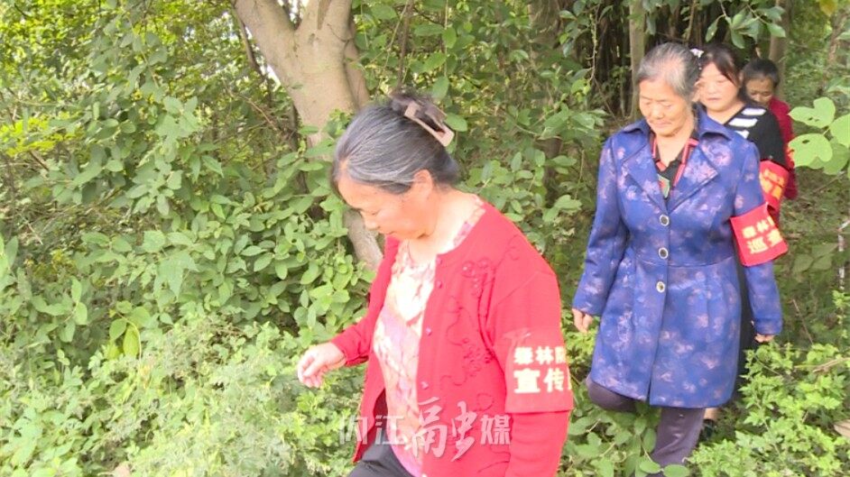 在乐贤街道永兴村的林区里,森林防火巡逻队正在进山巡逻。陈淑英是巡逻队员之一,每天她都会沿着重点区域巡山两个小时以上,全力守护永兴村的森林资源。