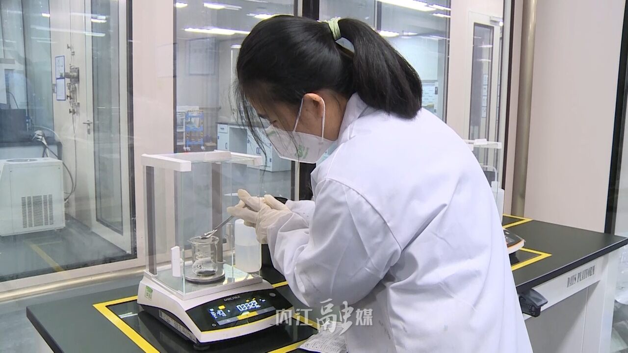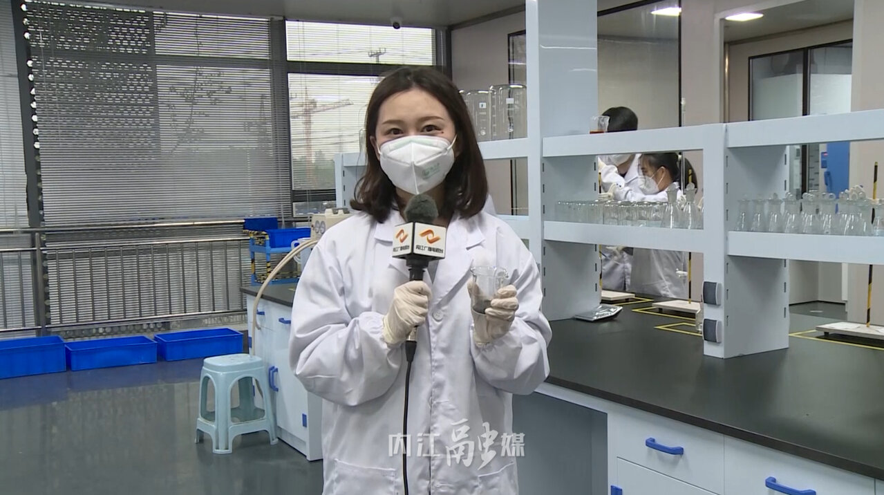 在记者手上烧杯里的黑色粉末就是磷酸铁锂,它具有能量密度高、成本低、安全性能好等特点,是新能源领域的香饽饽。而随着内江融通高科先进材料有限公司项目的建成投产,也给全市新材料制造业链注入了新的动力。