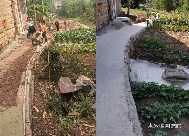 “你现在站的这个位置,以前是鸡圈,又脏又臭,现在是微菜园。”肖建安指着一块印有院落改造前后对比的牌子告诉记者,刚开始他担心修路会占了自己的地,有些不情愿,但便道修好后,他感受到了实实在在的好处:粮食、蔬菜运回家更快更省力了。“水泥路通了,我的院坝也拓宽了,到处干干净净的,心情舒畅多了。”肖建安说。