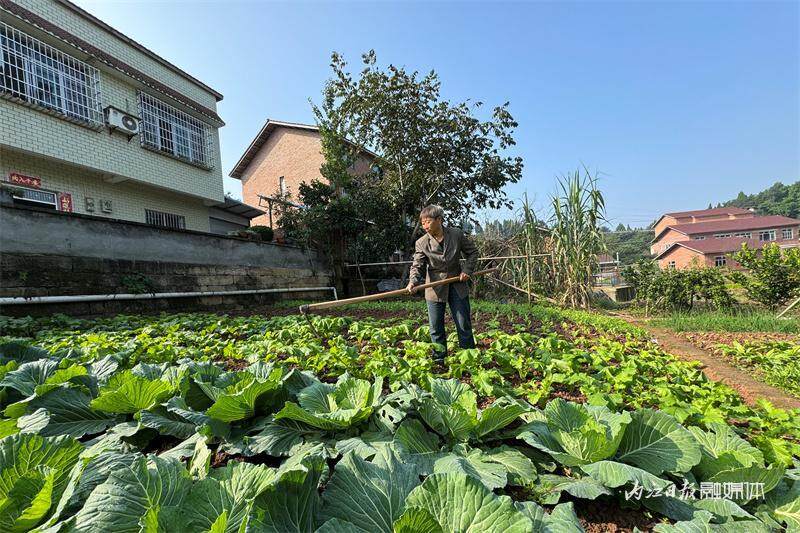 ▲10月30日,内江市东兴区东兴街道赛峨社区,居民在房前菜园内劳作。