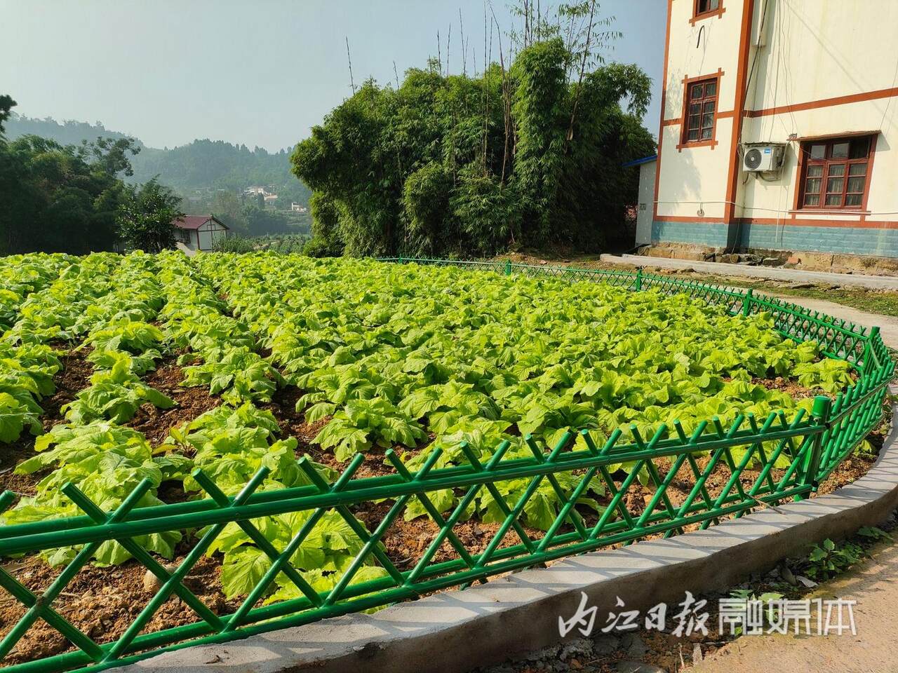 △“微菜园”用仿竹围栏围起来