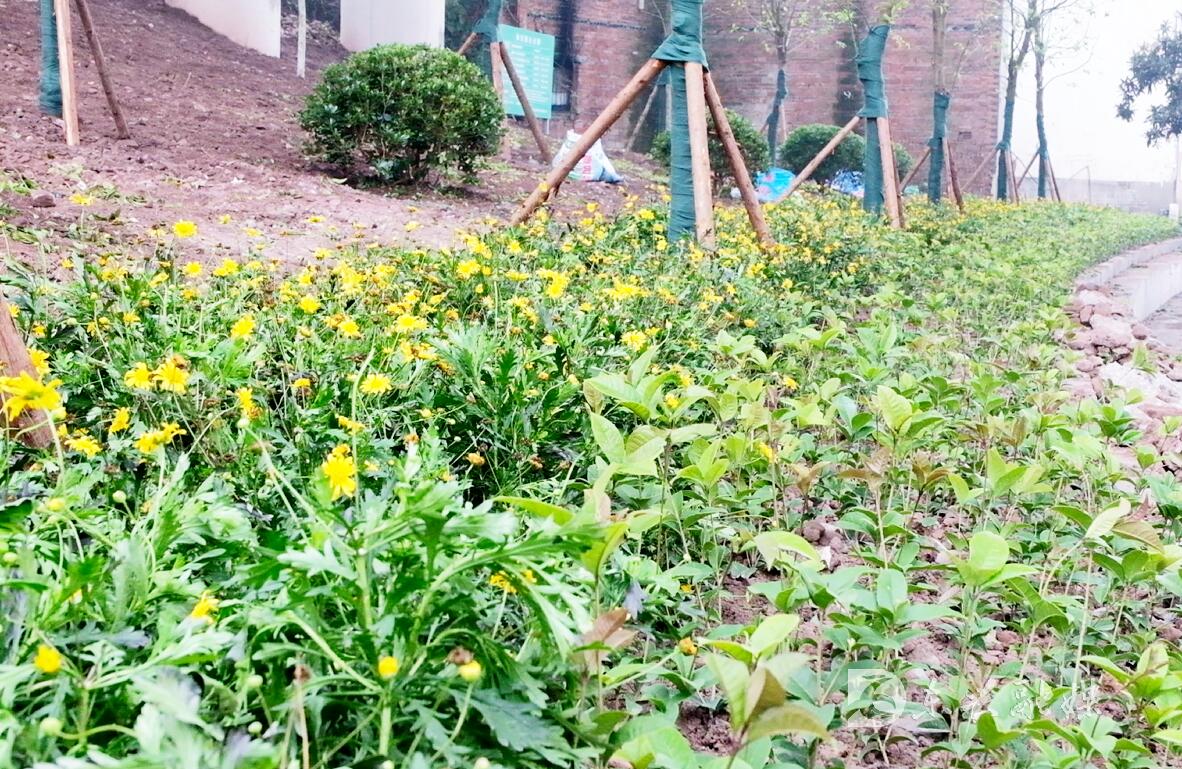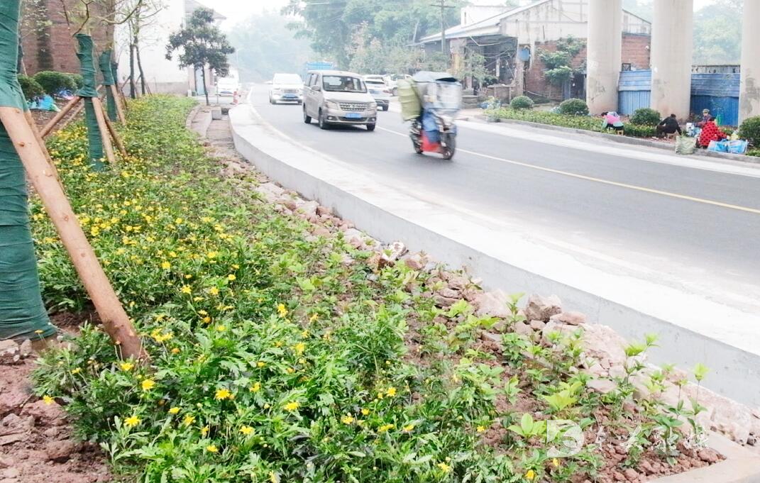 现场负责人告诉记者,当前工人们正在栽种麦冬、菊花等美化作物,天竺、黄花槐等七种行道树也在加紧移栽,潘家坝大桥、绕城高架桥下3000平方土地的美化工作大约还有一周就能完成。
