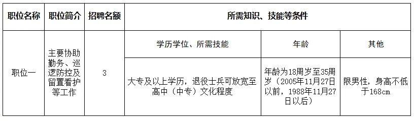 (三)具有大专以上文化程度(需提供毕业证或学籍卡)。同等条件下,学历高者优先聘用,特别优秀的退伍军人和具有较高专业技能的可适当放宽学历条件;