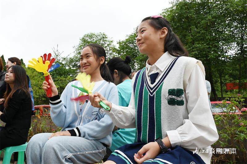 ▲9月23日,内江市东兴区东兴街道在新华社区举办“乡村普通话”暨“新时代好少年”演讲比赛。图为现场观众为选手加油。