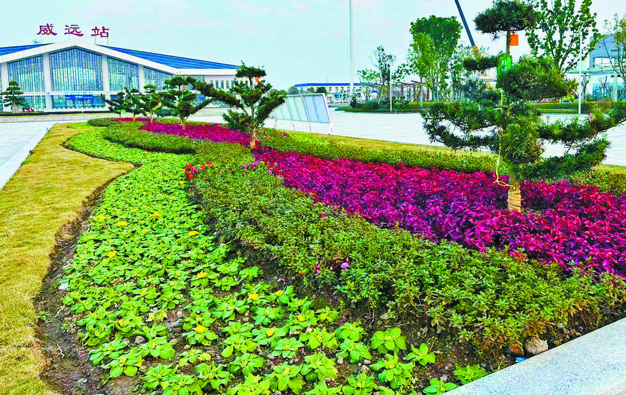 “整个项目在设计中融入绿色生态理念,体现现代化、人性化,注重舒适性,站前广场主入口两侧设计有绿化休闲空间,即将安装的风雨连廊,既可作景观装饰,又将成为游客候车时的休闲停歇地。”中交一公局集团有限公司威远县成自宜高铁威远站基础设施项目总工杨世强介绍,现场有200余名工人分布在各处施工,整体工程进度已达95%,“我们将保质保量、全力推进项目建设,确保12月底通车”。