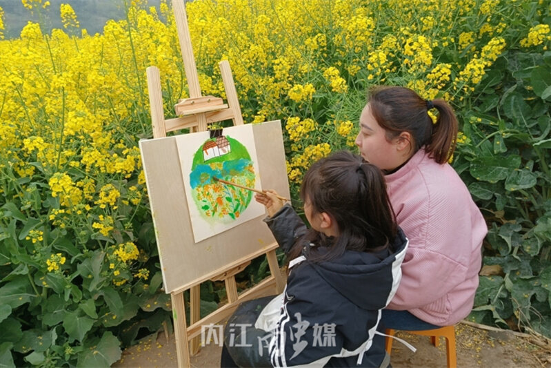 阳春三月,草长莺飞、花红柳绿,正是感受自然、亲近自然的大好时光。近日,东兴区椑木镇建设村及周边的连片油菜花竞相绽放,吸引了一群走出教室写生的孩子们来感受春光、手绘春天。