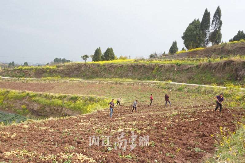 村民吴翠连:"全靠村上去年把撂荒地整治起来搞集体经济了,我现在没得事就在这边帮帮忙,一天还是有60块钱一天,还是可以。"