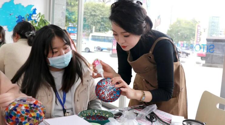 活动伊始,桌上已摆放好色彩斑斓的马赛克片、配件、胶等制作材料。授课老师向大家讲解了马赛克台灯制作的流程及注意事项,接下来大家开始动手制作,从设计配色到实际制作,充分激发和释放出自己的艺术灵感,在清透的玻璃片上尽情释放巧思和创意,将浪漫嵌入玻璃上,制作属于自己那份哥特式的浪漫,创造属于自己独一无二的马赛克台灯。