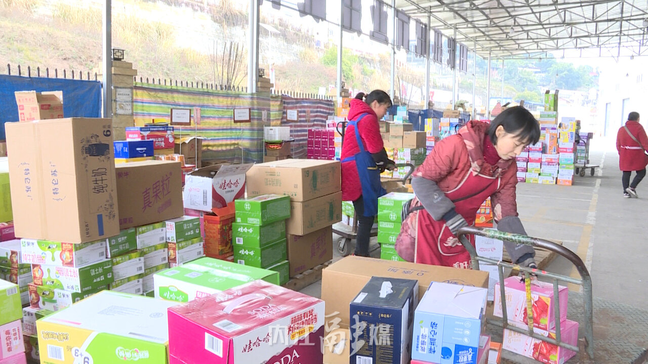 “旺仔(牛奶)只有那一单,19块9;“13块9五瓶脉动没货,脉动是没货的”......3月4日,记者在位于资中县公民镇的四川永利乡鹰电子商务商贸有限责任公司仓储中心看到,主播正忙着用手机直播,销售牛奶、饼干、饮料等生活用品,一旁的工人们则迅速将这些订单货品一件件地清点、装箱、封箱、贴单、上车,通过物流直接发往全国各地,整个现场忙而有序。
