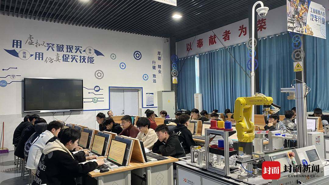“同学们好,今天我们一起来学习运动副……”3月13日下午,在内江职业技术学院的生产线自动化仿真与调试专业课上,智能制造与汽车学院实验员干伟伸手指了指大屏幕:屏幕上,黑色加粗字体“基本机电对象与执行器概述”等关键词提示着这堂课的主要内容。屏幕前方,47名学生凝神听讲。