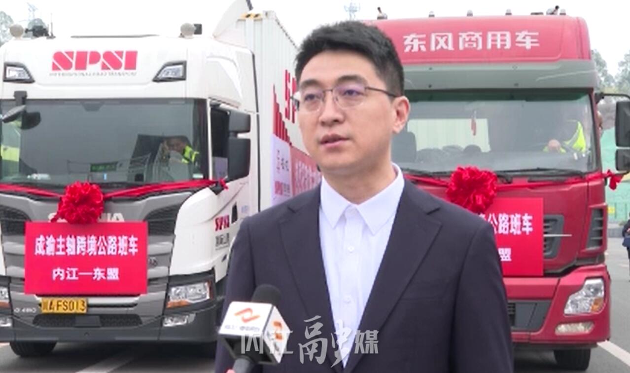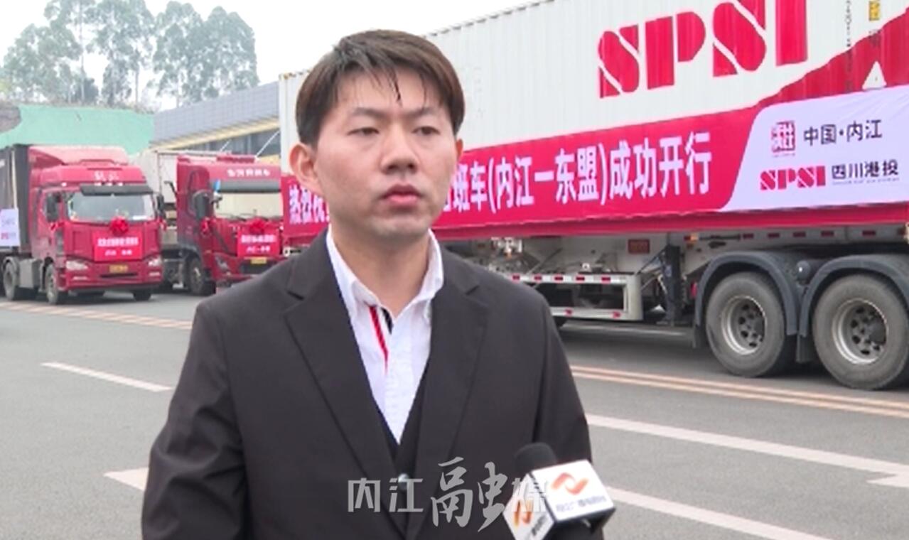四川港投国际公路运输公司总经理李铭:“这次发车仪式标志着我们成渝主轴城市内江班列班车集结中心正式启动,未来我们四川跨境物流班车将从内江源源不断地开行到东盟国际和地区,为促进内江和东盟国家的经贸往来开辟一条新的通道。”