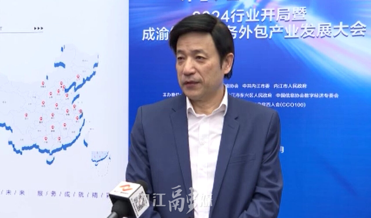 中国信息协会数字经济专业委员会会长、中国呼叫中心与电子商务发展研究院院长倪春洋:“我们东兴区其实在服务外包产业发展方面也已经初具规模,像世界五百强及同类企业等已经入驻了十多家,也形成了服务外包产业集群,相信在内江市委市政府的正确引导下,一定会打造成为中国服务外包示范城市。作为参会方,中国信息协会数字经济专委会也会从数字人才培养、政策引导、产业基金发起等活动开展和活动交流等方面参与加入东兴区服务外包产业集群建设当中。”