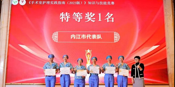 近日,四川省护理学会《手术室护理实践指南(2023版)》知识与技能竞赛举办,内江代表队以总分位列第一,荣获本次大赛特等奖!
