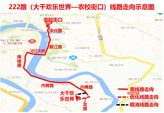 为进一步优化公交线网布局,有效提升公交车运营效率,内江市公共交通集团有限责任公司定于2024年4月7日起对208路、222路线路走向进行优化调整。具体事宜通告如下:
