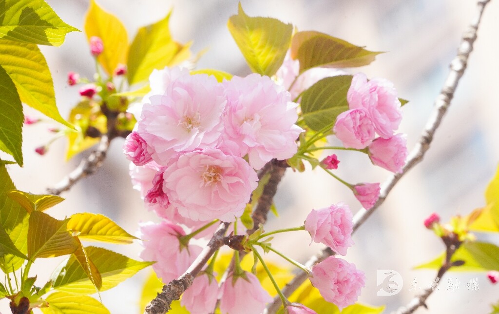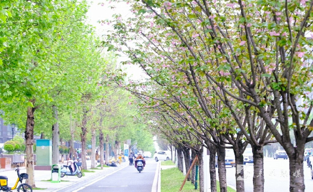 在北环路,长长的樱花路如诗如画,樱花轻轻地摇曳着,散发出一阵阵清幽的香气,树枝上花团锦簇,烂漫璀璨,空气中到处弥漫着浪漫唯美的春天气息。