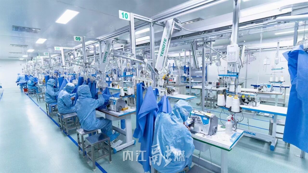 目前,公司已投产口罩、手术单、垫单、手术衣等6条生产线,客户覆盖全市120多家医疗机构,在经历由“高衣定制”到医药产品“内江造”的“四次转型”后,成功跻身为我市规模最大的医疗耗材生产制造企业,实现质的跨越。