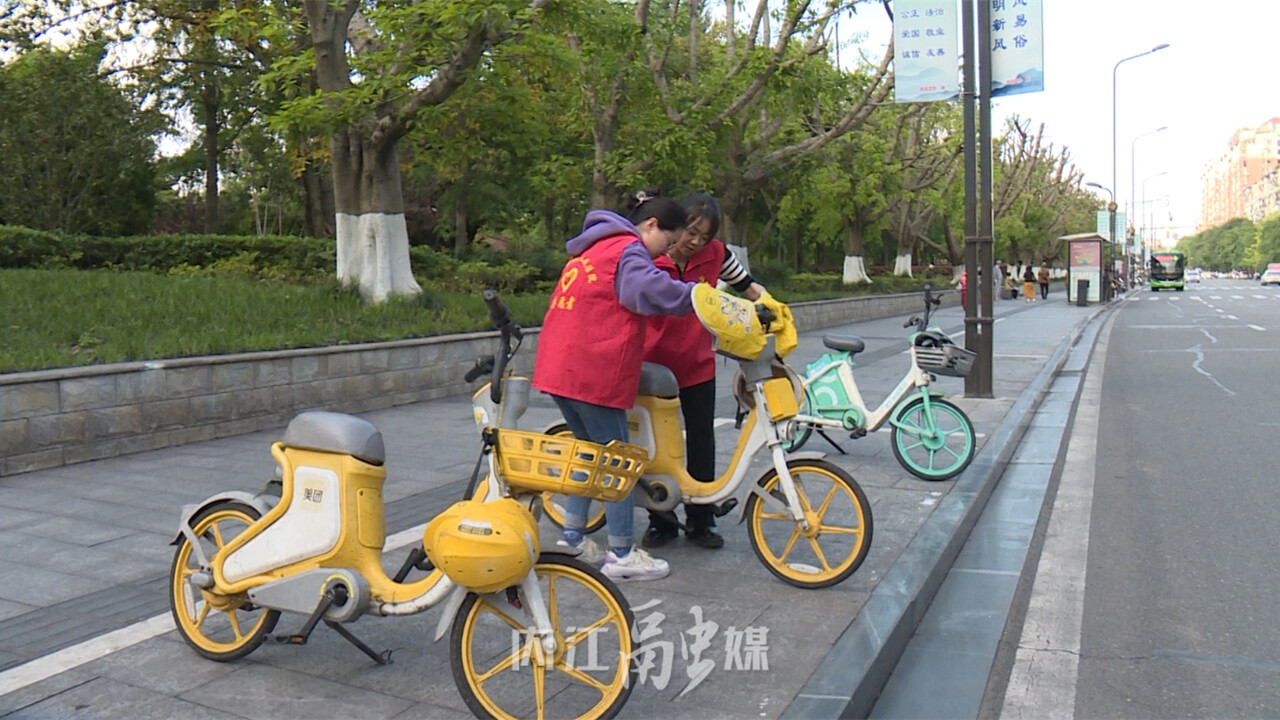 同一时间,在东兴区西林大道、市中区大洲路等路段,来自市纪委监委、市中级人民法院的志愿者们正沿街开展整理乱停乱放共享单车、捡拾路面白色垃圾等文明实践服务。