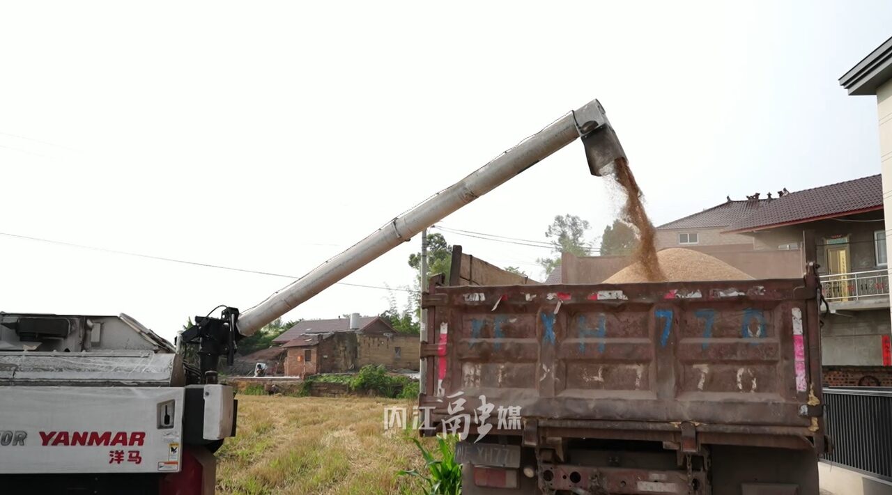 据了解,收割好的小麦将被直接运输到资中县五良融合联村带民农业发展有限公司进行烘干处理,实现麦收全程机械化作业。