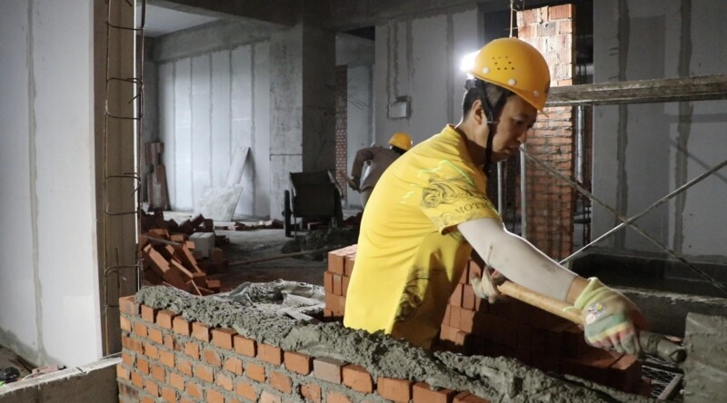 9月22日,记者在项目现场看到,一栋栋研发大楼拔地而起,200余名建设者分布在各个区域多点作业,砌墙、抹灰、管道安装等,现场忙而有序。