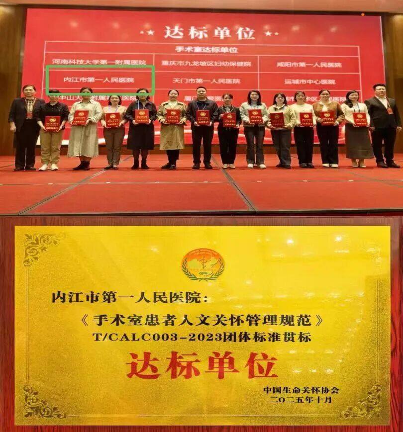 时间:2025-11-10 10:31:19 来源:内江市第一人民医院近日,内江市第一人民医院成功通过中国生命关怀协会严格评审,荣获《手术室患者护理人文关怀管理规范》贯标达标单位授牌,实现内江市在该领域“零的突破”,标志着医院人文护理标准化建设迈上新台阶。