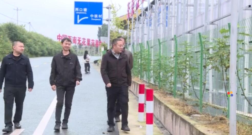 在威远县新店镇无花果科研育苗大棚里,李金平正在查看无花果树。即使身兼新店镇党委副书记、镇长与无花果科学研究所所长数职,行政事务缠身,他仍时常扎根田间。