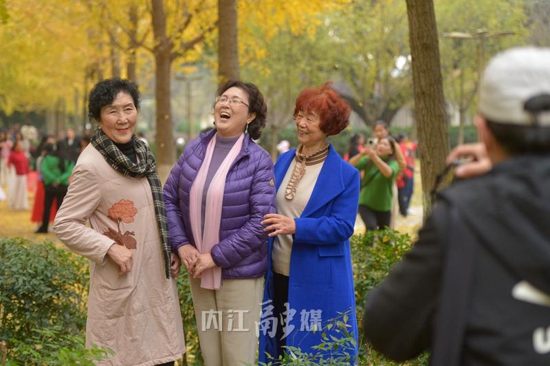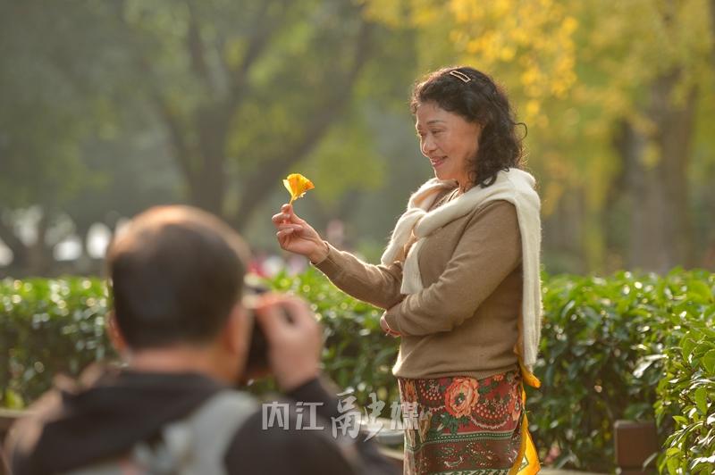内江:大洲广场银杏金黄,市民乐享冬日暖阳
