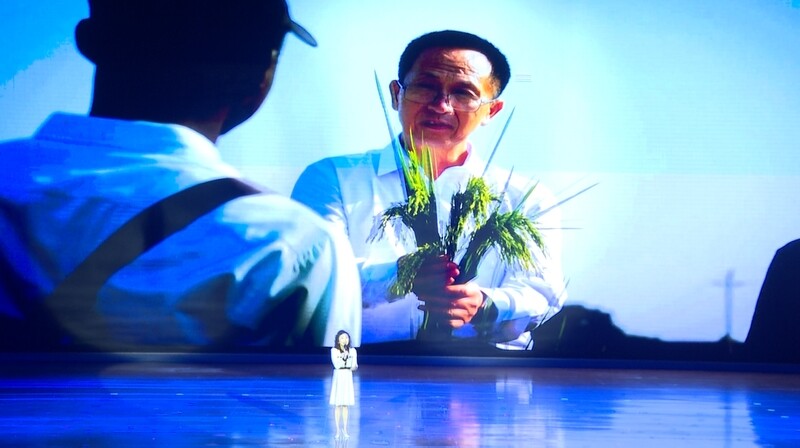 第二篇章“大爱无垠”开启时,大屏幕上出现了一段越洋视频。画面里,农业专家杨华德站在异国的田间地头,皮肤晒得黝黑,身后是一片即将丰收的水稻。作为长期驻外的农业专家,他远离家乡和亲人,在异国他乡的田间地头深耕农业技术推广,把先进的种植理念和技术带到当地,助力当地农业可持续发展。