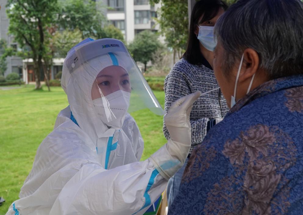 “行动不便的,我们在点上采集结束后会逐一上门采集。为了不让已经到现场的高龄老人等得太久,尽量不耽误学生上网课的时间,志愿者会与排队的居民协商,尽量优先为他们采集核酸。” 鄢玲说。