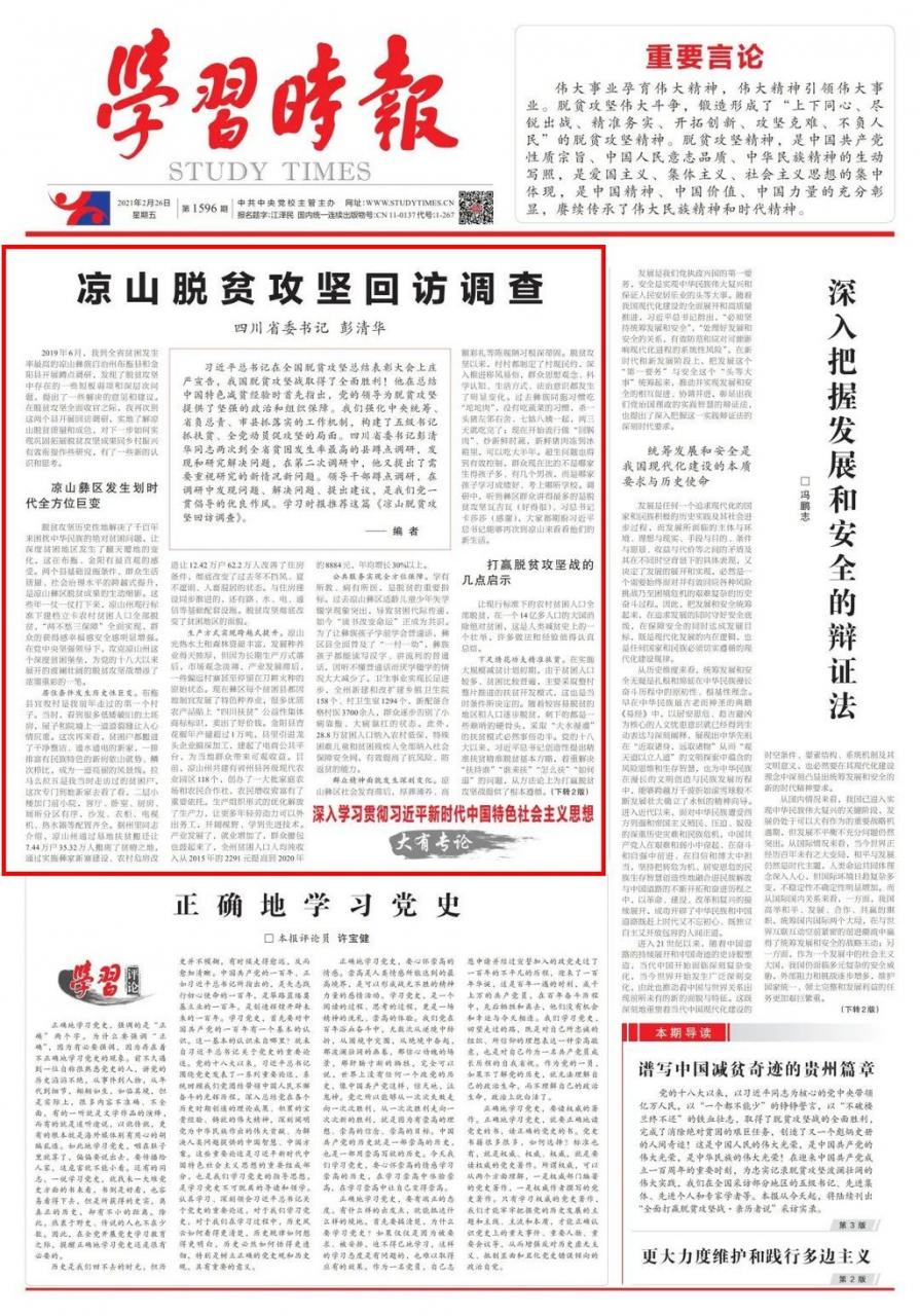 2月26日出版的《学习时报》发表中共四川省委书记彭清华的蹲点调研报告《凉山脱贫攻坚回访调查》。川观新闻全文转载如下: