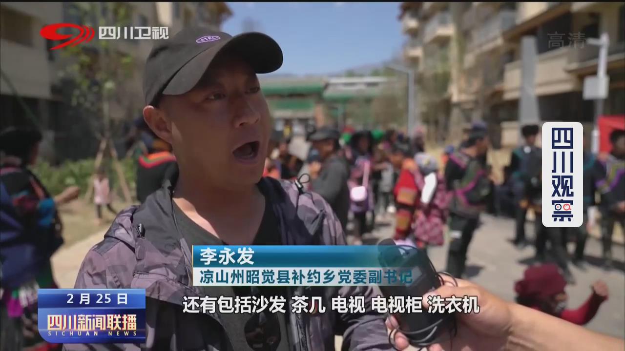凉山州昭觉县补约乡党委副书记 李永发:饭桌还有碗柜、衣柜、橱柜,还有包括沙发、茶几、电视、电视柜、洗衣机这些全是我们党和政府给他们统一配置。
