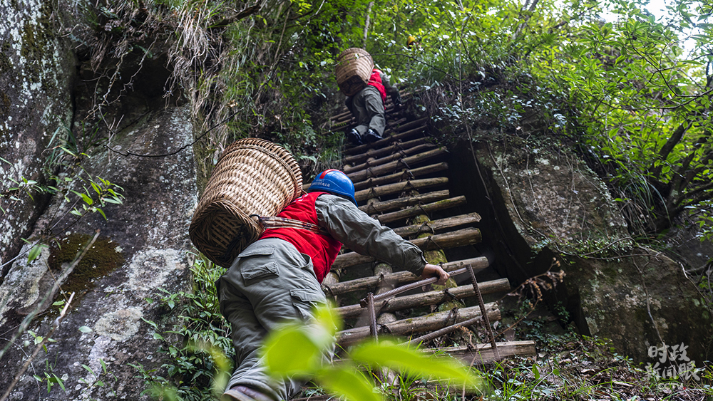 △2月8日,湖北利川市“背篓电工”党员服务队翻越中坪村“手扒崖”路段,排查当地用电设备隐患。