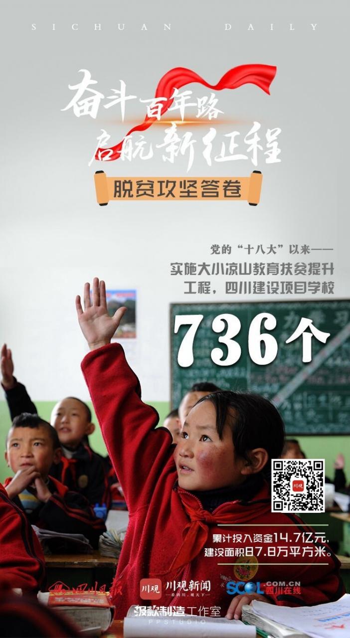 2014年起,省委、省政府启动实施大小凉山彝区教育扶贫提升工程,助力彜区教育事业发展,有效阻断贫困代际传递。7年来,我省累计投入资金14.7亿元,建设项目学校736个,建设面积87.8万平方米,一座座崭新校园拔地而起,一阵阵琅琅书声回荡山谷,广大彝家学子正利用现代化网络教学设备连接世界、走向未来。