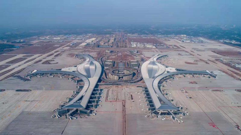 目前,机场航站区T1航站楼、T2航站楼、GTC综合交通换乘中心、机场酒店等已完成主体建设,正在进行最后的内部装修作业。例如,T2航站楼的“巴蜀景观”打造已进入收尾阶段,GTC屋面及地面绿化施工也在加紧进行中。
