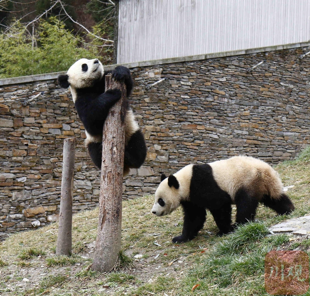 中国大熊猫保护研究中心耿达神树坪基地玩耍的大熊猫。