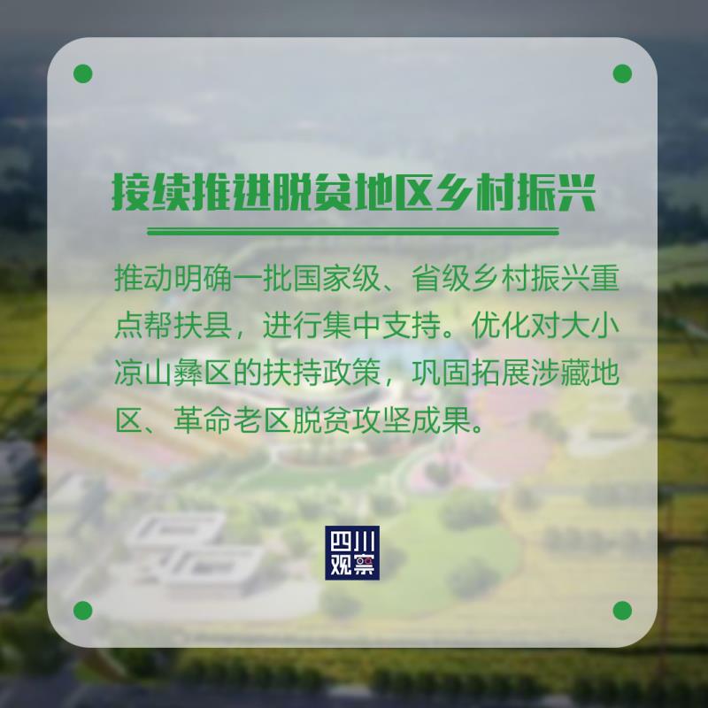 (七)接续推进脱贫地区乡村振兴。推动明确一批国家乡村振兴重点帮扶县,确定一批省级乡村振兴重点帮扶县。指导市县自主确定一批乡村振兴重点帮扶村,进行集中支持。优化对大小凉山彝区的扶持政策,支持凉山州按规定开展巩固拓展脱贫攻坚成果同乡村振兴有效衔接示范工作。支持涉藏地区、革命老区巩固拓展脱贫攻坚成果、推进乡村振兴。