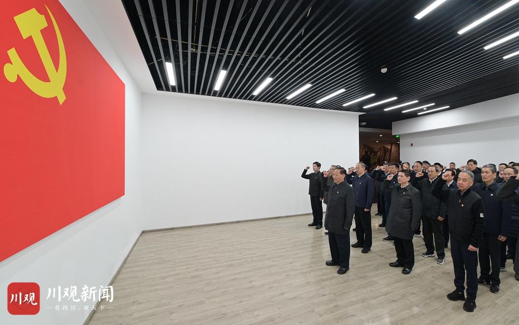 在纪念馆,大家详细听取红军长征在四川特别是翻越夹金山的艰辛历程,并在彭清华带领下集体重温入党誓词。