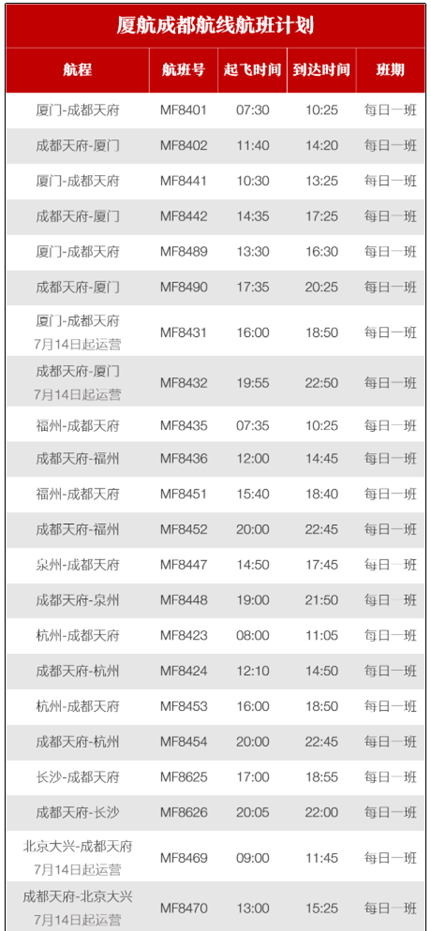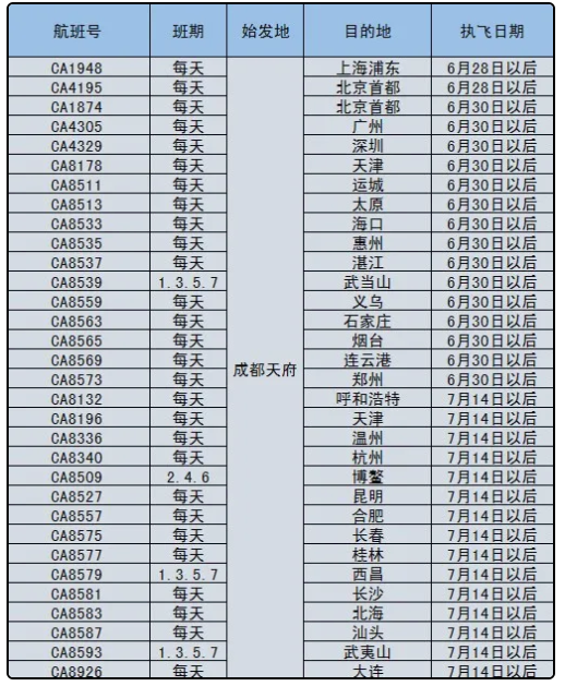 7月14日起,天府机场将提高北京大兴、上海浦东、杭州、南京等商务干线频次