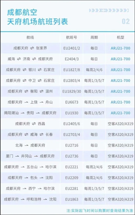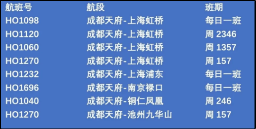 开通成都天府至北京(首都、大兴)、上海(虹桥、浦东)、广州、深圳、杭州、南京、厦门、武汉等商务干线