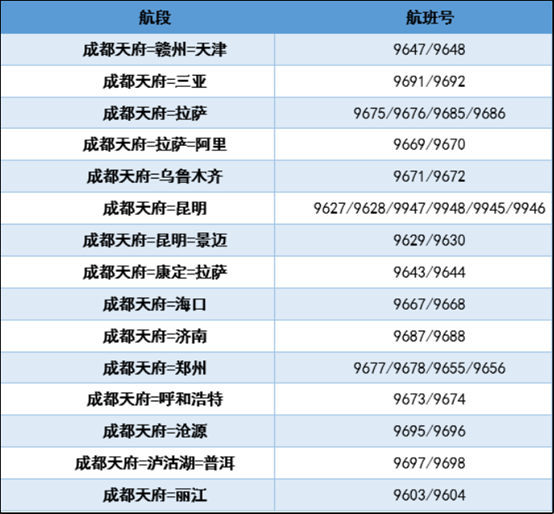 成都至拉萨、三亚、迪庆、井冈山等热门旅游航线