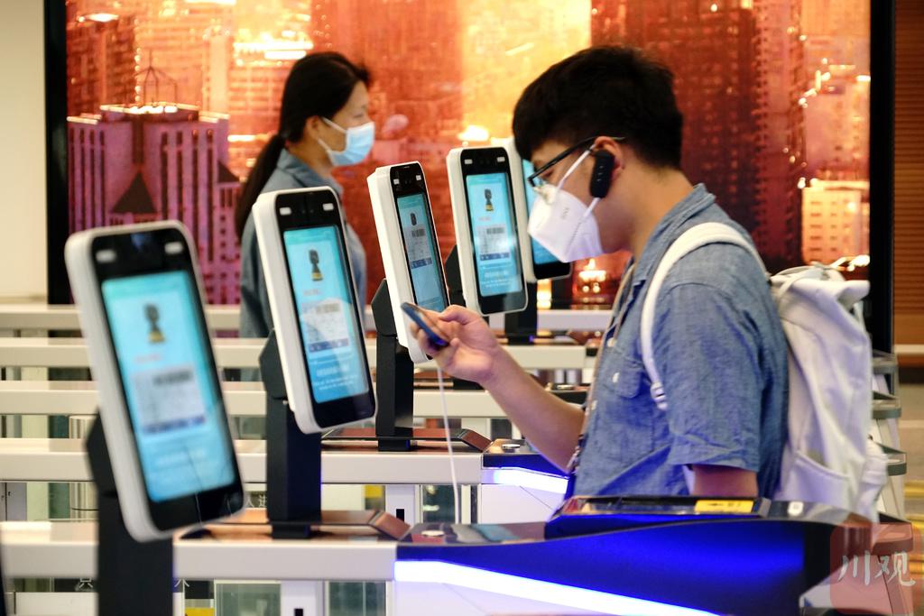 成都天府国际机场旅客安全检查现场配置了预安检闸机、自助验证闸机、毫米波安检门、智能安检线。