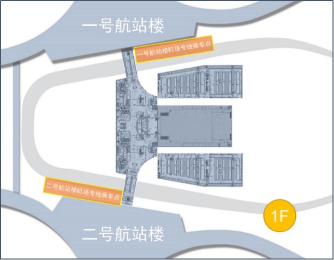 ● 一号航站楼机场专线乘车点:一号航站楼侧L1层。